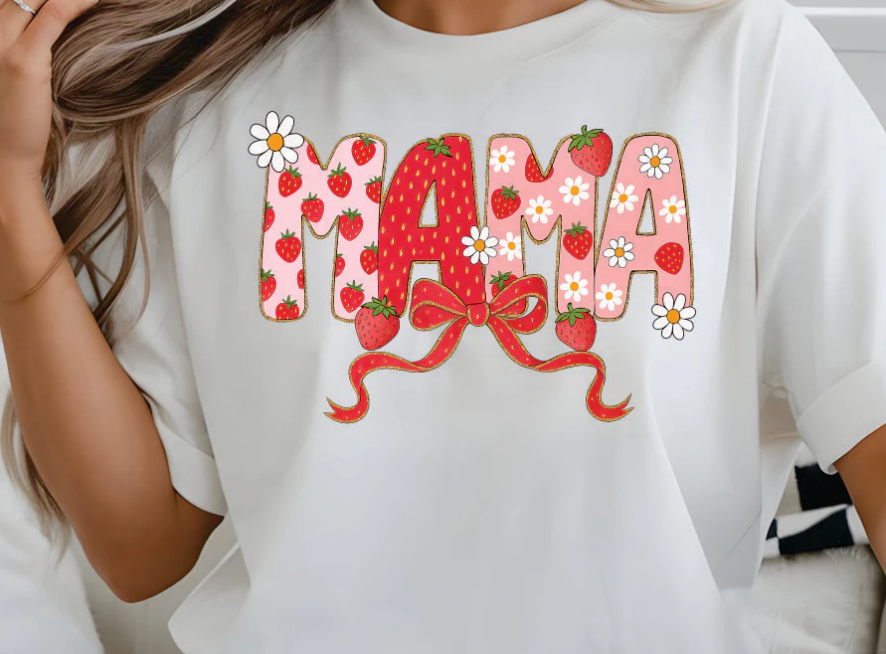 Strawberry MAMA With Bow Print